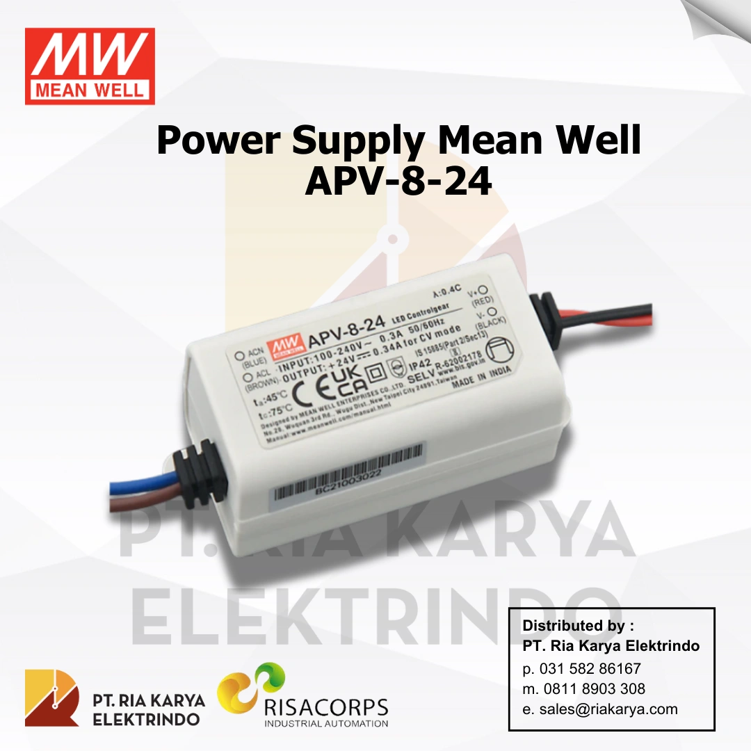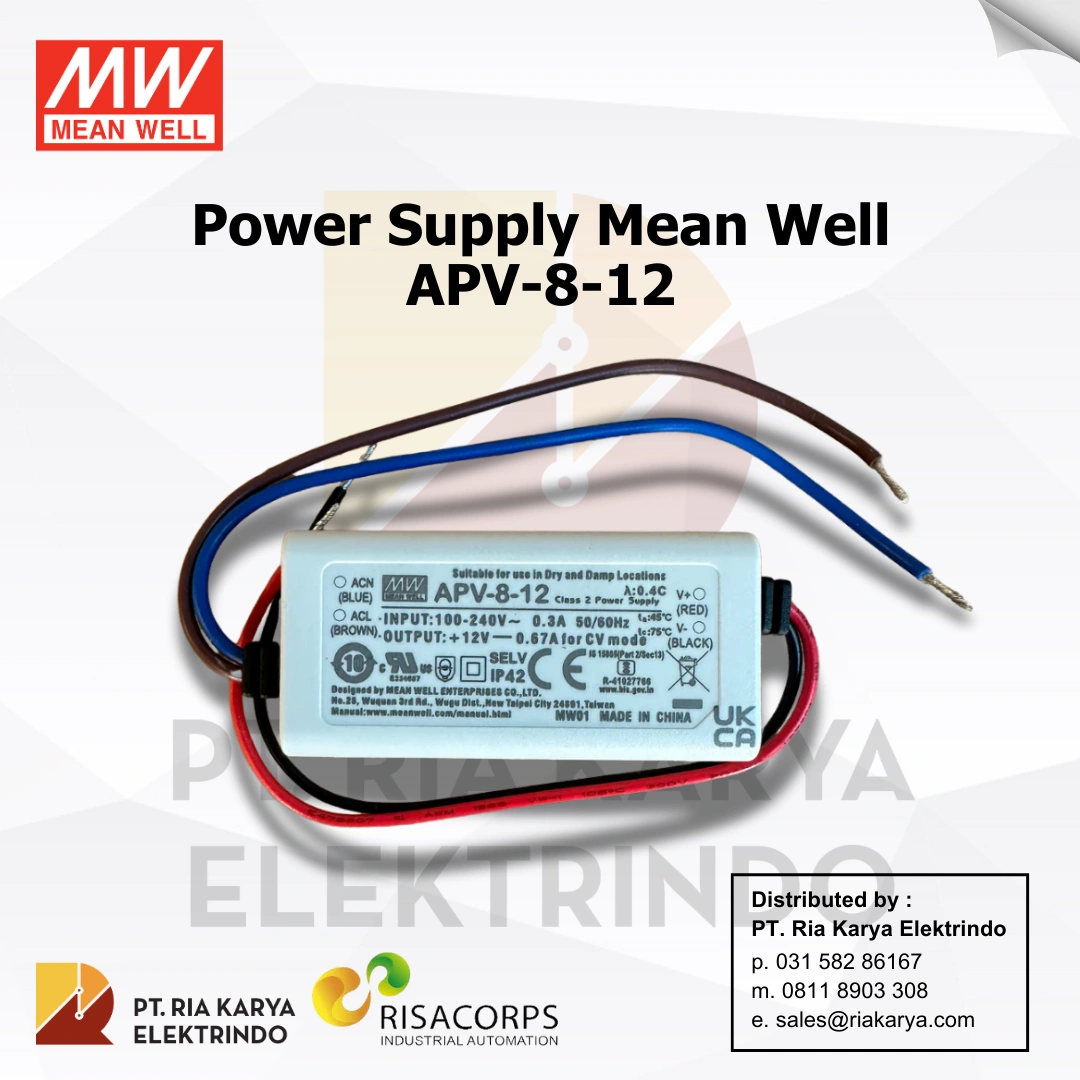Mean Well APV-8 Series adalah power supply LED driver dengan daya output 8W. Cocok untuk aplikasi pencahayaan LED, memiliki efisiensi tinggi, ukuran ringkas, serta perlindungan terhadap arus lebih, tegangan lebih, dan hubung singkat.